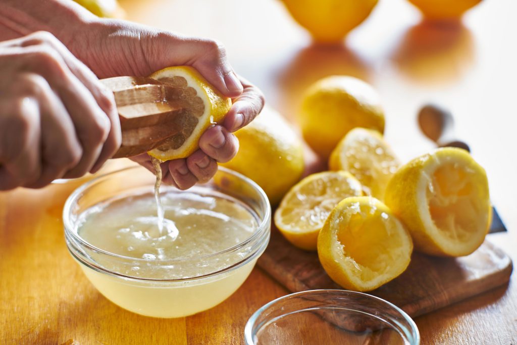 - Wyciśnij sok z dwóch cytryn do miseczki.
